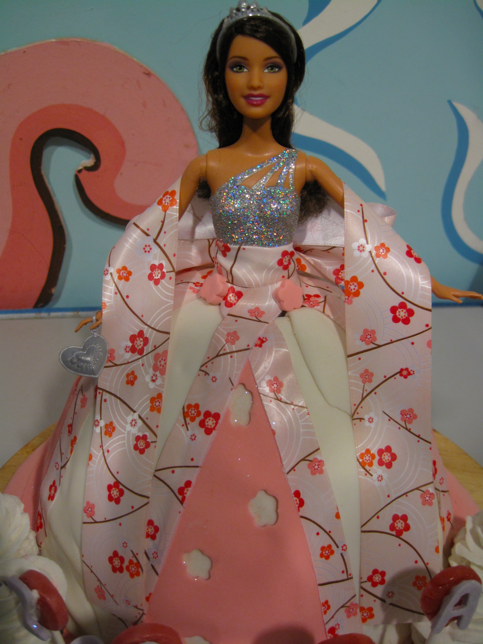 We chose our “salad” ingredients with care. Dried pomelo, mango, lychee and strawberries, as well as caramelised cashews, chocolate almonds, winter melon, pumpkin and sesame seeds. I also candied some tiny Japanese apples, and caramelised some beautiful little oranges. AngelKitten spent ages painstakingly painting the dried fruits and nuts with gold powder, and I baked, candied and caramelised. We rolled fondant, applied our beautiful printed icing sheet, and sat back and sighed with happiness.