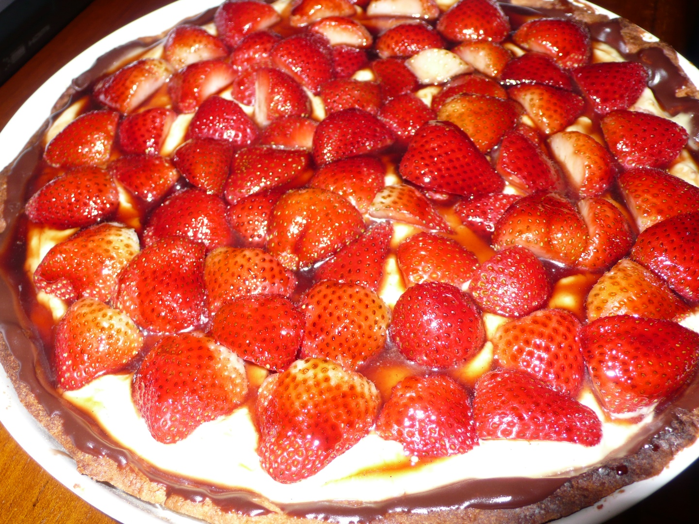 YumArrange strawberries in a pretty pattern all over the creme patissiere, and brush them gently with the port wine glaze. Refrigerate for at least half an hour and up to a day.