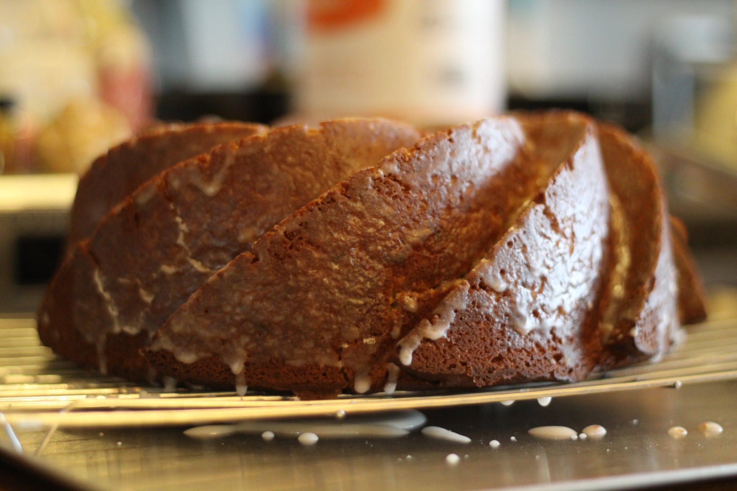 Flip the cake onto a cake rack, and lift off the bundt pan in one smooooth move.