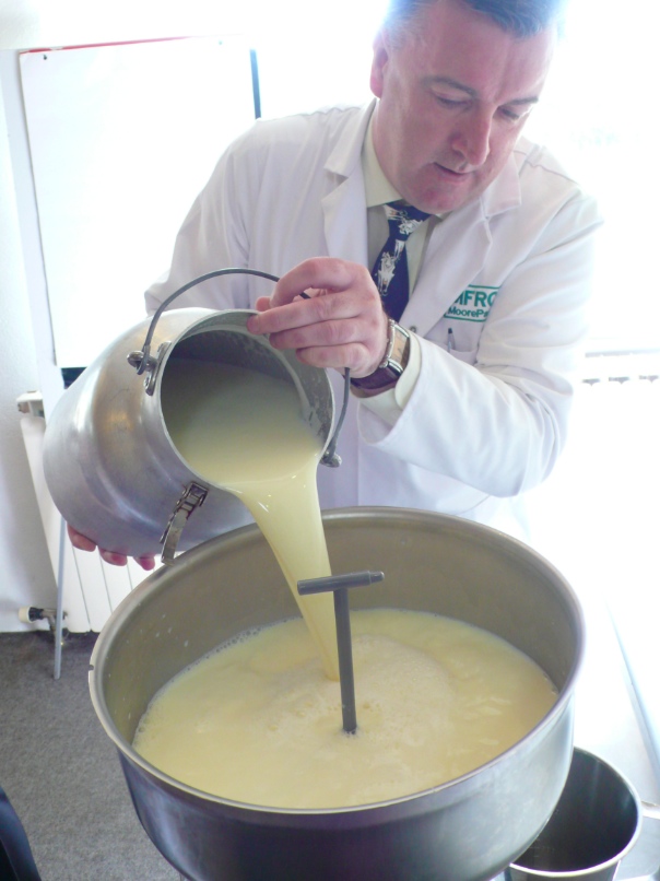 In the morning, we were introduced to Eddie O-Neill, Dairy Artisan Food Specialist at Teagasc’s Moorepark Research Centre. Eddie is a cheese man pure and simple. He is immersed in cheese making and can easily explain the science of milk – and cheese – in an accessible and yet scientific manner. Eddie was fascinating, enthusiastic, passionate and totally immersed in the magic of turning milk into cheese.