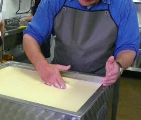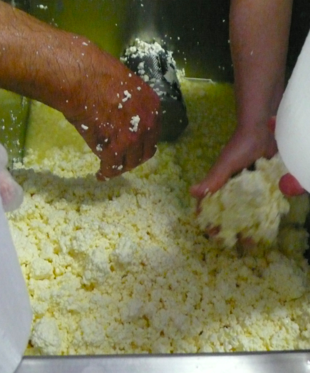 Eddie went through the complex and precise process of making a Gouda type cheese with us. He heated the milk, added the rennet, waited a certain amount of time, and then cut the resulting set milk, and stirred for a set amount of time to release as much of the liquid as possible. It may look mundane, but there was something mystical about the entire process.