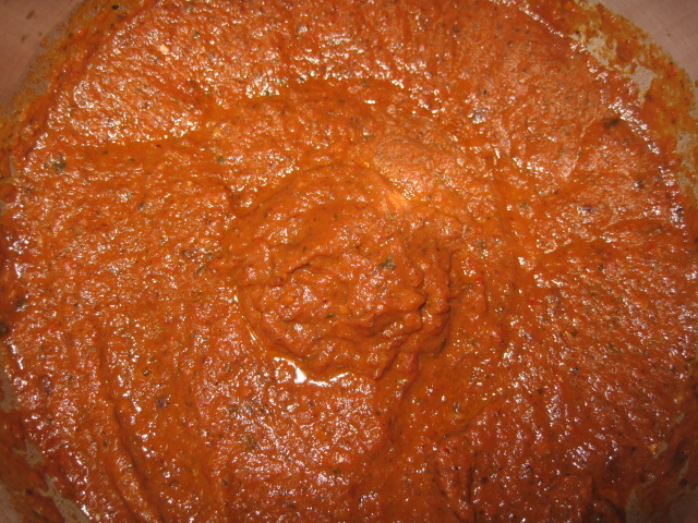 Cook for about 5 minutes on high-ish heat. You want to burn the eggplant a little bit, and allow the onions to melt into the mix. When you start smelling that wonderful eggplant roasted burnt scent (its unmistakable) add the next part.