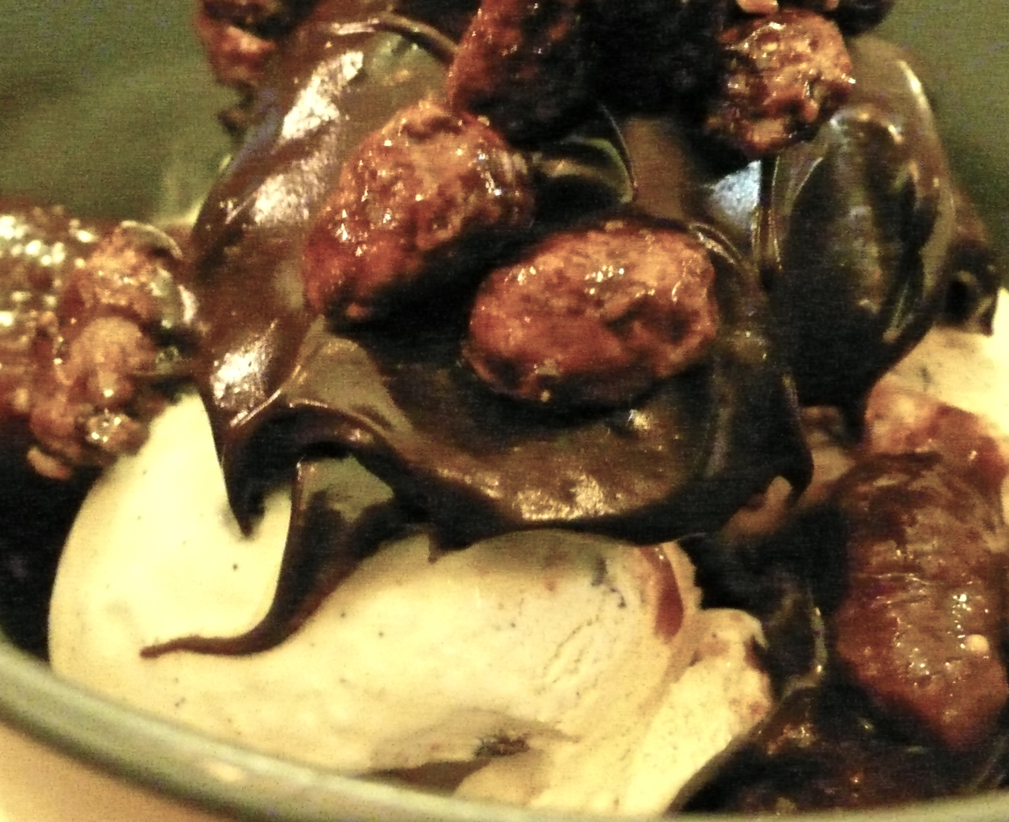 Such an amazing contrast. And such a wonderful aphrodisiac. Capsaicin, the compound which gives chili its heat, is considered an aphrodisiac the world over. It stimulates our nerve endings, gives us a rush of endorphins and makes our pulse beat faster. Pretty sexy, I would say. And combining the chili with chocolate, another well known aphrodisiac, is like a partnership made in heaven. You could serve this ice cream unadorned, and it would be a revelation. Combined with hot fudge sauce and port pear chili jam, it becomes a sundae that over takes the sense, strokes the fires and makes people melt. It really is that good.
