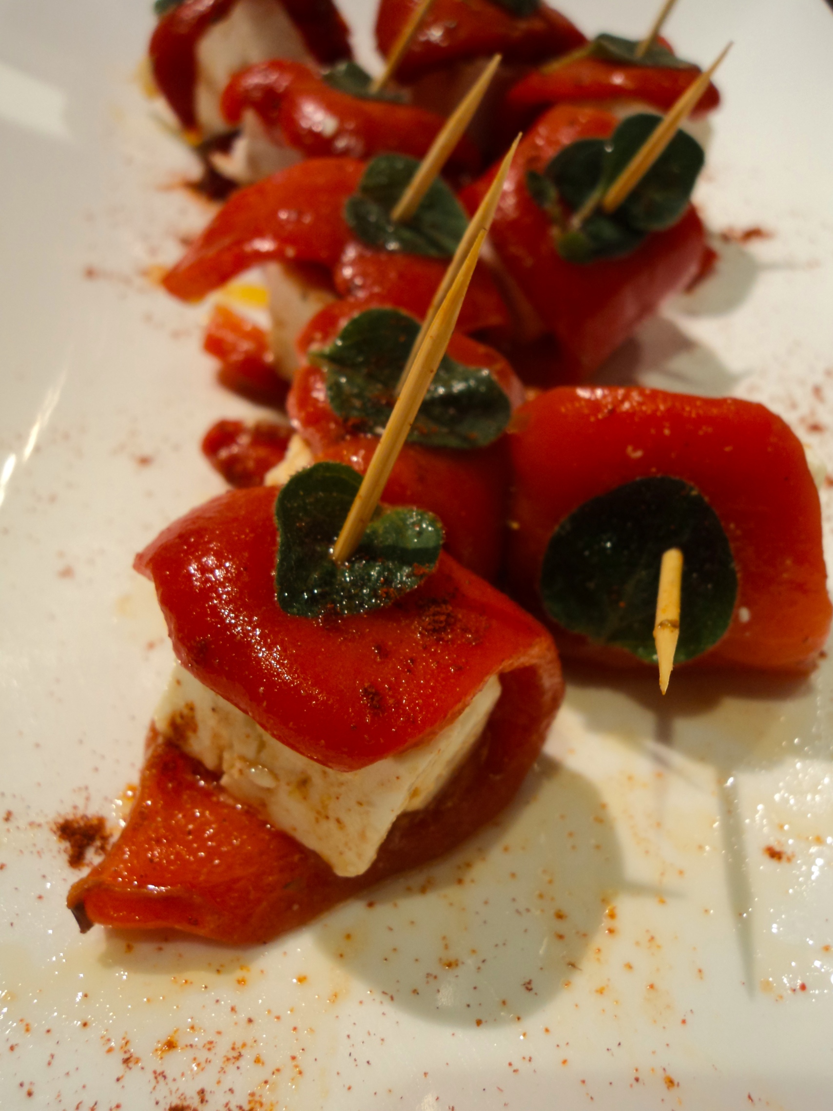 These marinated red peppers with feta and smoked paprika were the second tapas served at the recent O’Gourmet Food Hall Spanish red wine tasting. They were paired with a Gotes 2009, and the sweet-salty combination of the peppers and feta served to deepen and highlight the wine. The smoked paprika added depth and flavour without overwhelming the lush combination.