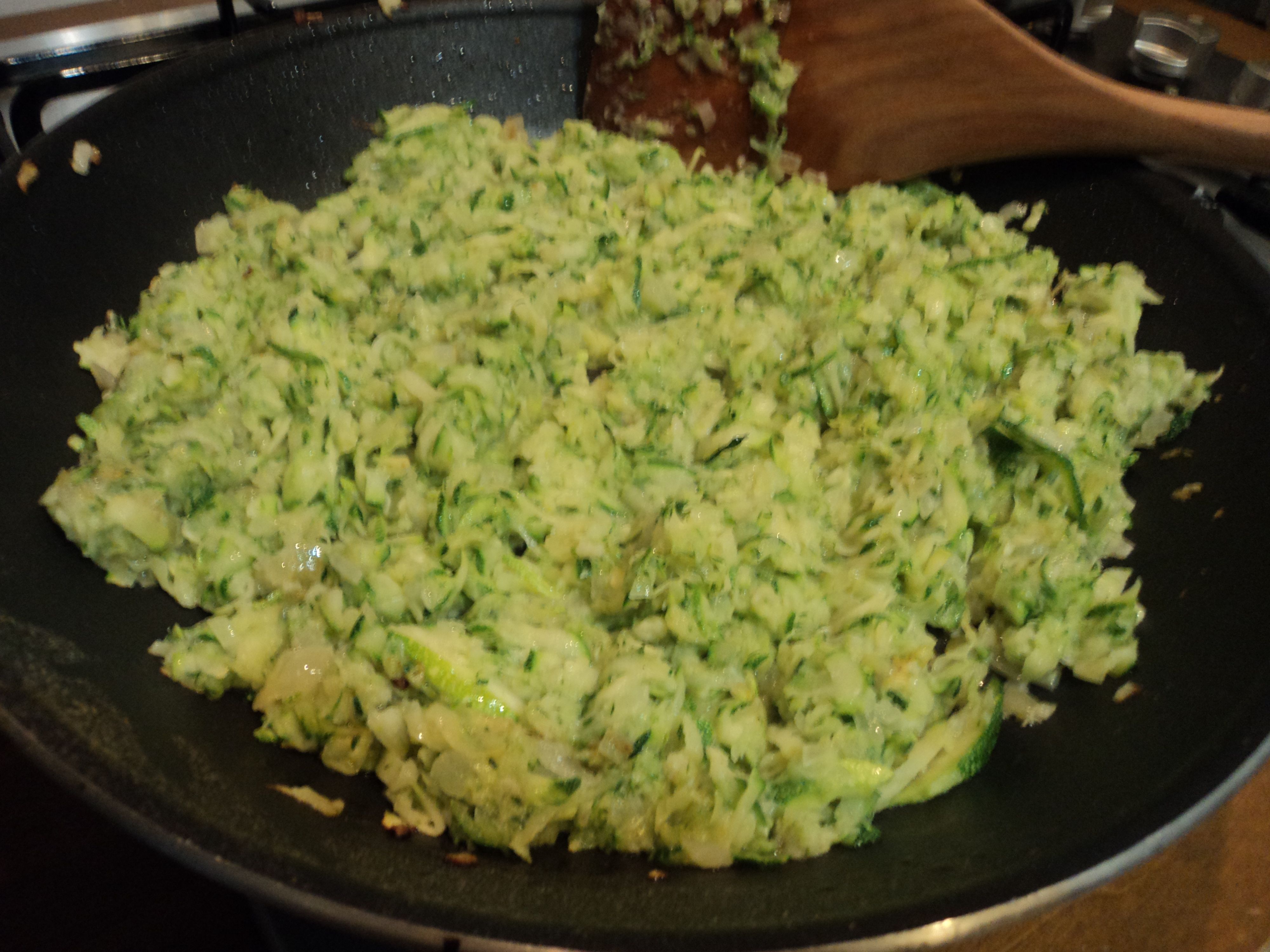 Add the fresh mushrooms, half a cup at a time. You want them to saute, and quickly lose their water without becoming soggy. Stir well after every addition, and season with salt and pepper.