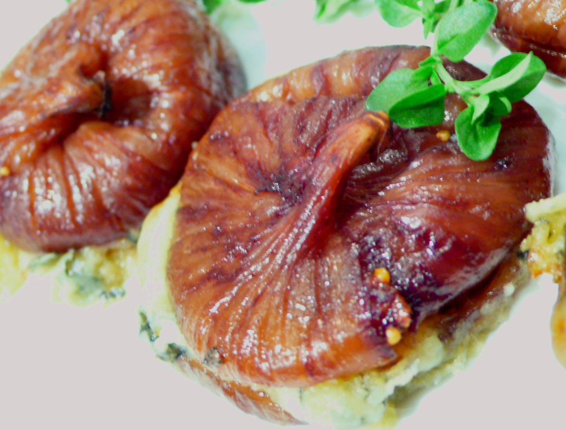 If you are serving the figs as a starter, you could glaze them with a reduction of red wine.